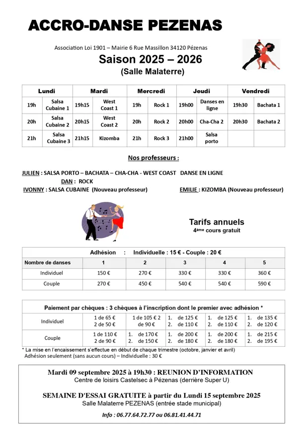 Semaine d'essais (gratuite) du lundi 15 au vendredi 19 septembre 2024,